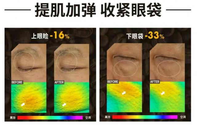 它不仅能轻松去除黑眼圈和细纹,促生胶原蛋白的能力也很强,就像给眼部注入能量,收紧眼袋、提拉紧致、填充泪沟,简直就是一支眼周涂抹式小热玛吉。