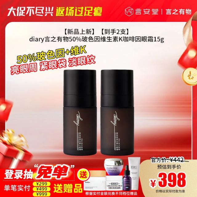 熬夜后涂抹能瞬间提神,咖啡香也很治愈。上新优惠价398元能到手2支,还送0.5克同款、5g光子白霜和2片577面膜。此外,趁着大促返场活动,还能领取专属赠品。手头缺眼霜的姐妹可以放心囤货。