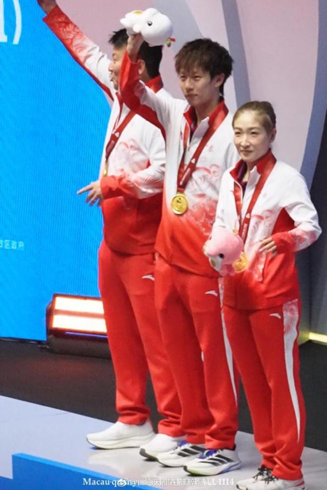 他还称赞刘诗雯:“我觉得在落后的时候,雯姐在我旁边特别淡定。可能是因为她大赛经验特别丰富,越到落后的时候,她越有办法。我在场上落后时有时候会着急,但是她的经验让我能稳定发挥,认真打好每一分球,我觉得这是我们逆转的关键。”