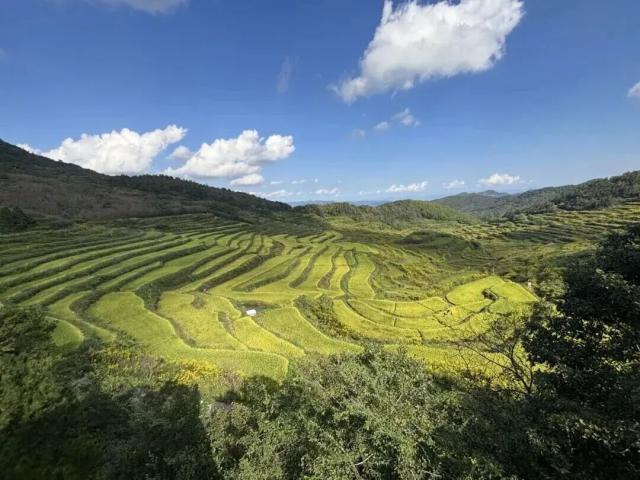 徒步途中,层层梯田如链环绕山间,沉甸甸的稻穗随风轻摇,竹海青翠欲滴,茶园清幽雅致,满目皆是治愈人心的田园画卷。你既可体验收割稻谷的农耕乐趣,也可登上大雷山,看云雾缭绕如临仙境。这般感受自然之趣与田园之美,惬意感油然而生。