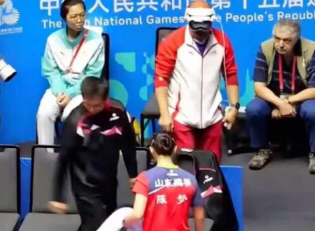 陈梦在全运会上取得如此佳绩,多数网友表示认可。但也有部分人对她的成绩存疑,而陈梦队医在1/4决赛后的举动,恰好给了这些质疑者“把柄”。陈梦击败蒯曼后,队医头戴VR眼镜,在场边与她击掌庆祝。