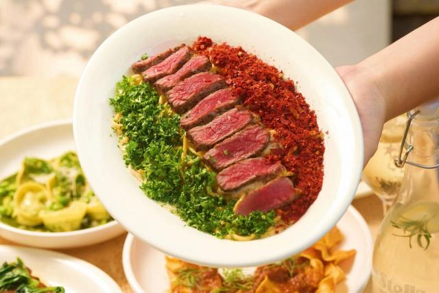 如果您是第一次来,苏倩推荐大肉丸博洛尼亚肉酱手工宽面和低温牛排配秦椒奶酱蘑菇面。前者有着典型的小朋友喜爱的酸甜口味,每一口都能感受到肉感、酱香与面香的完美融合,带来最原始的满足感;后者采用36小时低温锁鲜的菲力牛排,搭配陕西秦椒的微辛与丝滑奶酱,口感柔和醇厚。