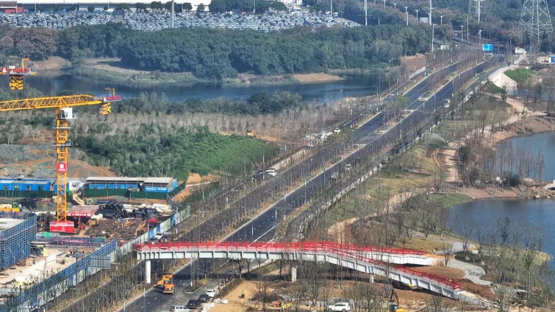 目前,湖中正在建设的文旅新景点,如活力岛、百花洲等已初显风情。项目完工后,在环湖西路东侧凤鸣研创中心工作的人们可以眺望美丽景色,也可以通过跨越环湖西路的凤溪桥这一人行景观廊桥到湖边洲岛湿地漫步,在大自然的怀抱中激发更多创意。