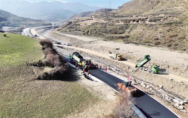 集中安置点道路是灾区民众生活恢复的“生命线”,旧庄沟安置点连接线的推进,为重建材料运输、生活物资配送提供便捷通道。工程采用“以路带水”理念设置防护措施,既保障道路安全、减少后续灾害风险,也让民众出行更安心。截至目前,旧庄沟安置点连接线已完成新建涵洞 7 道,挖土石方 158634 立方米,现浇砼 2969 立方米,砂垫层 24438 平方米,水泥稳定碎石底基层 72698 平方米,沥青混凝土面层 32199 平方米,工程计划近期完成交安设施安装、标线施划等全部施工任务。