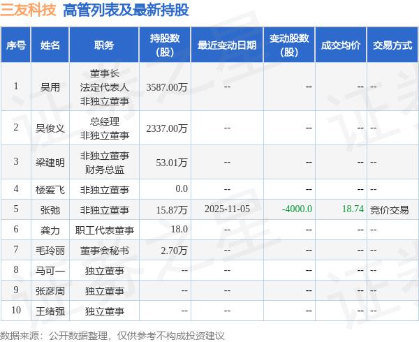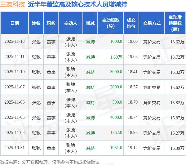 三友科技近半年内董监高及核心技术人员增减持详情如下: