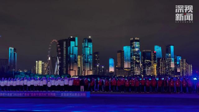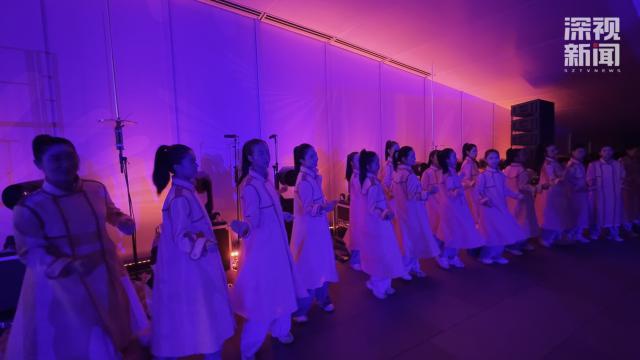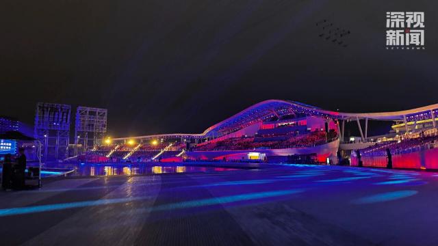 记者在现场看到,夜幕下,深圳夜景与闭幕式舞台设计交相辉映。