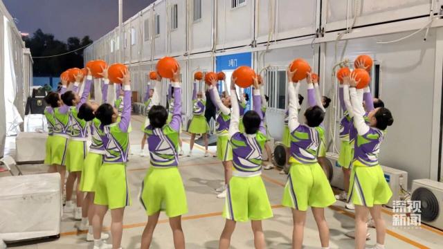 记者在现场看到,深外舞蹈团的表演者们在后台,利用碎片时间加紧练习,只为让抛球动作更加整齐划一。