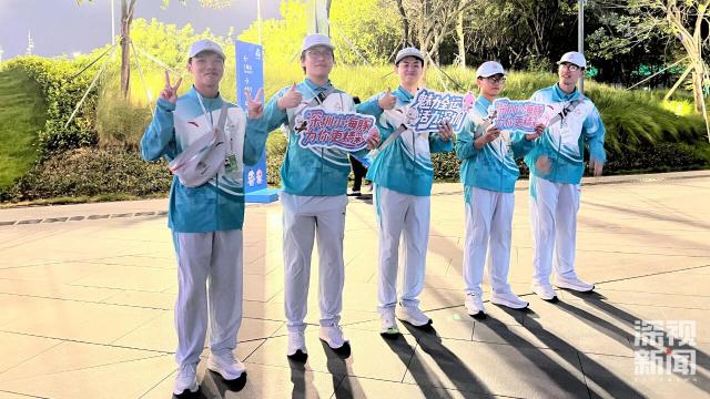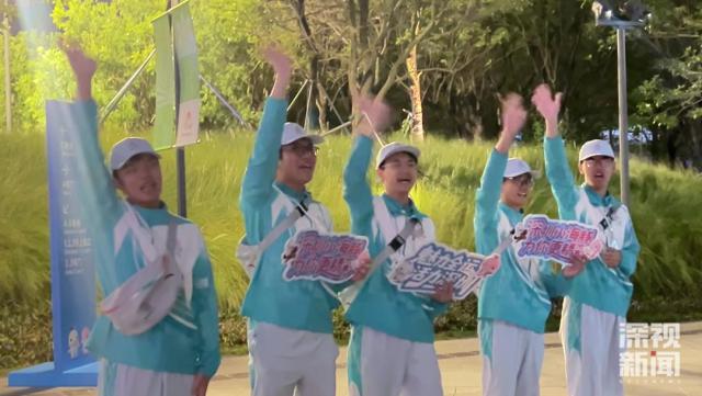 在进场处,大学生志愿者激情满满地喊出全运会口号欢迎观众,还首次带上有标语和深圳元素的展板,给到场观众留下了深刻印象。