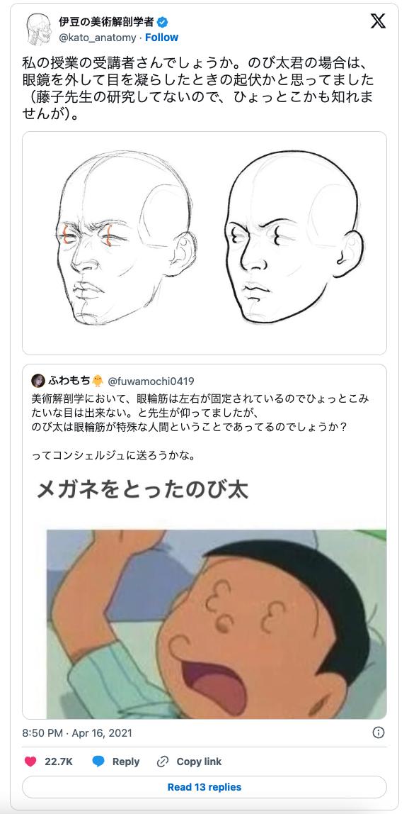 令人意外的是,日本美术解剖学教授加藤公太对这一现象做出了解释。他表示,实际上近视的人摘掉眼镜后,若想看清东西,眼睛确实会微微起伏,呈现出类似“3”的形状。漫画里的“33 眼”,其实反映了眼部肌肉活动的状态。