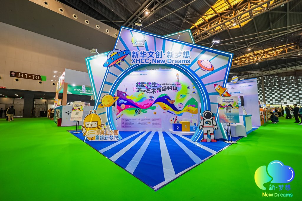 “新·梦想”国际小小插画家大赛颁奖仪式为活动增添了童真色彩。童书展期间,2025年“新·梦想”国际小小插画家大赛获奖作品展、“心灵绿ZHOU·童心无忧”主题互动展以及“阅美上少图,童绘新梦想”申城少儿阅读季联名展在“新华文创·新梦想”展台向公众开放,展期三天。通过VR线上展馆、线下创新互动装置、借阅办证服务等,为观众带来沉浸式体验。