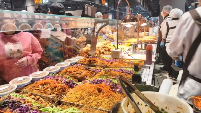 熟食区引入场景化消费概念,覆盖多种用餐场景,明厨亮灶展示烹饪过程。门店引入江西本土卤味品牌煌上煌,满足本地口味需求。