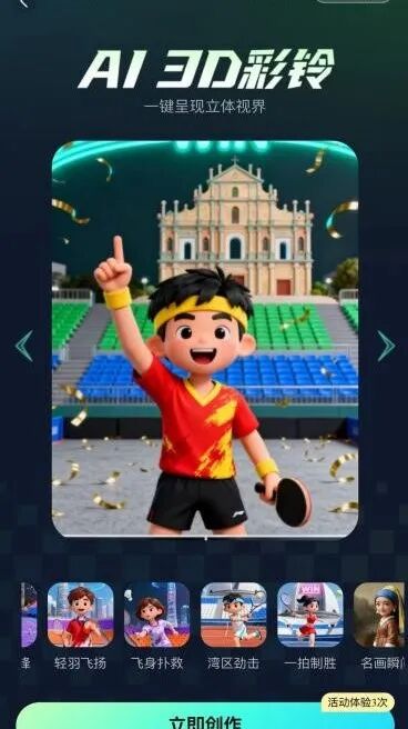 AI智创彩铃:全运会不仅可以看,更可以玩。中国移动咪咕上线多款AI智创彩铃应用,AI歌手生成专属助威歌曲,AI3D彩铃生成运动员3D卡通形象,AI一图趣变开启“大湾区”线上深度游,从听到唱,从看到玩,全民参与全运狂欢。