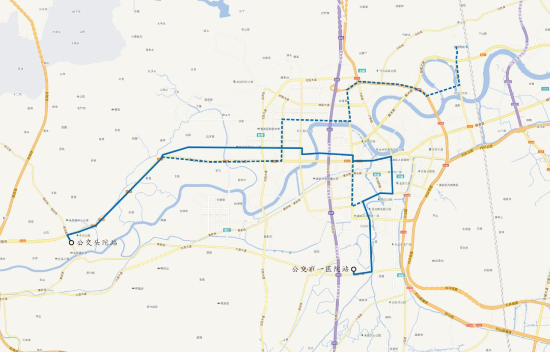 2. 线路走向:西沅路、黄前线、黄长路、环城西路、西街、劳动路、横街、环城东路、九峰路、桔乡大道、朱砂街、站西大道、联岛路。