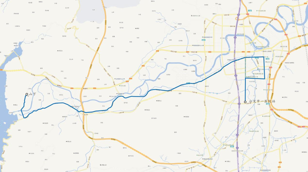 1. 首末站:由“公交山下站—城区”变更为“公交山下站—公交市一医院站”。