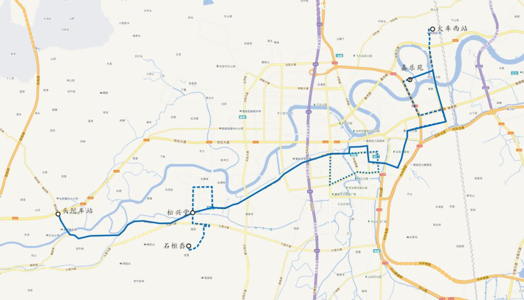 2. 线路走向:石峰路、九澄大道、黄前线、风光路、河曲路、新江路、黄前线、九澄大道、石峰路。