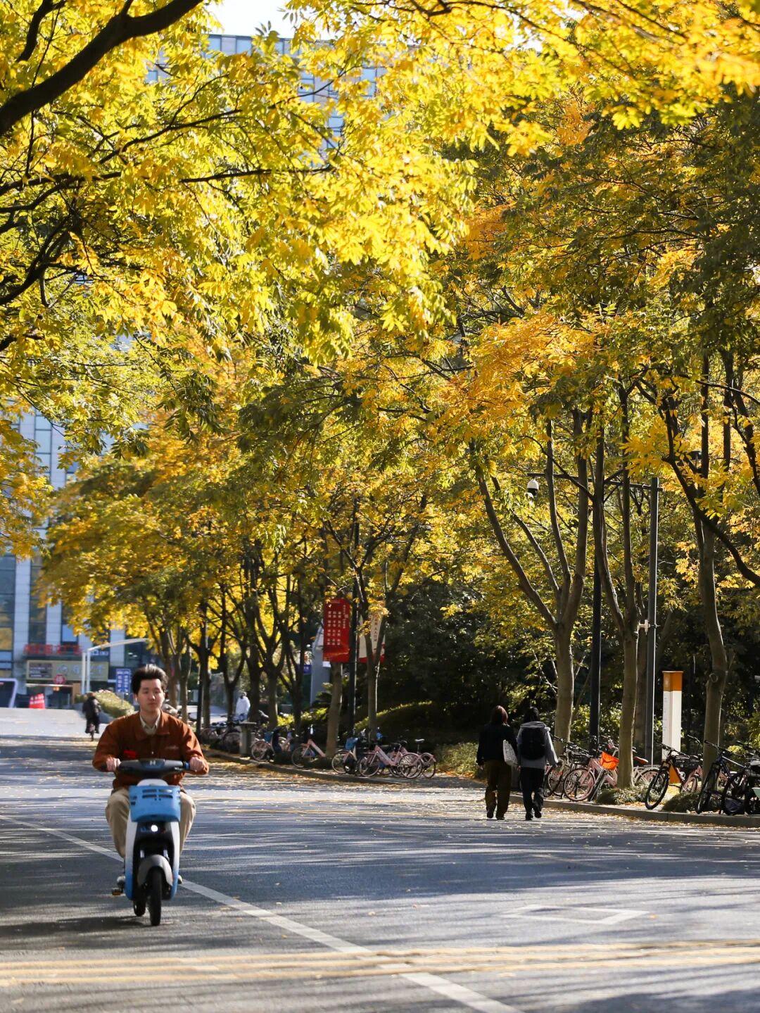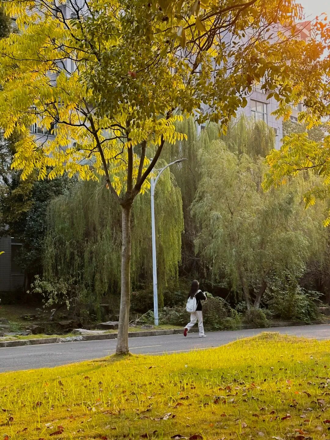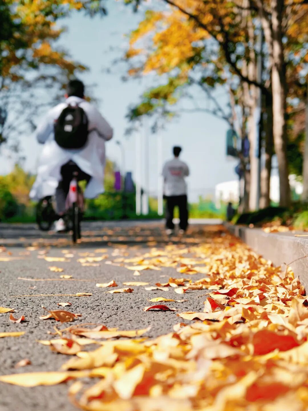 西环路也悄悄变了颜色。下课铃响后,三两好友相约一起去采风,用镜头定格这限定的美景。