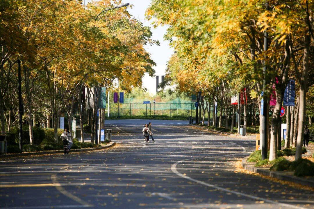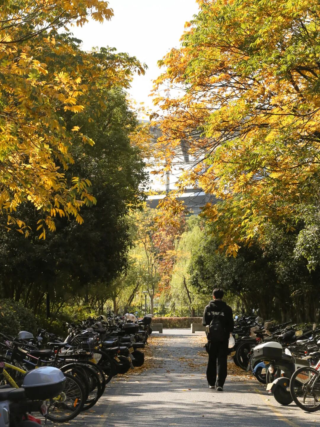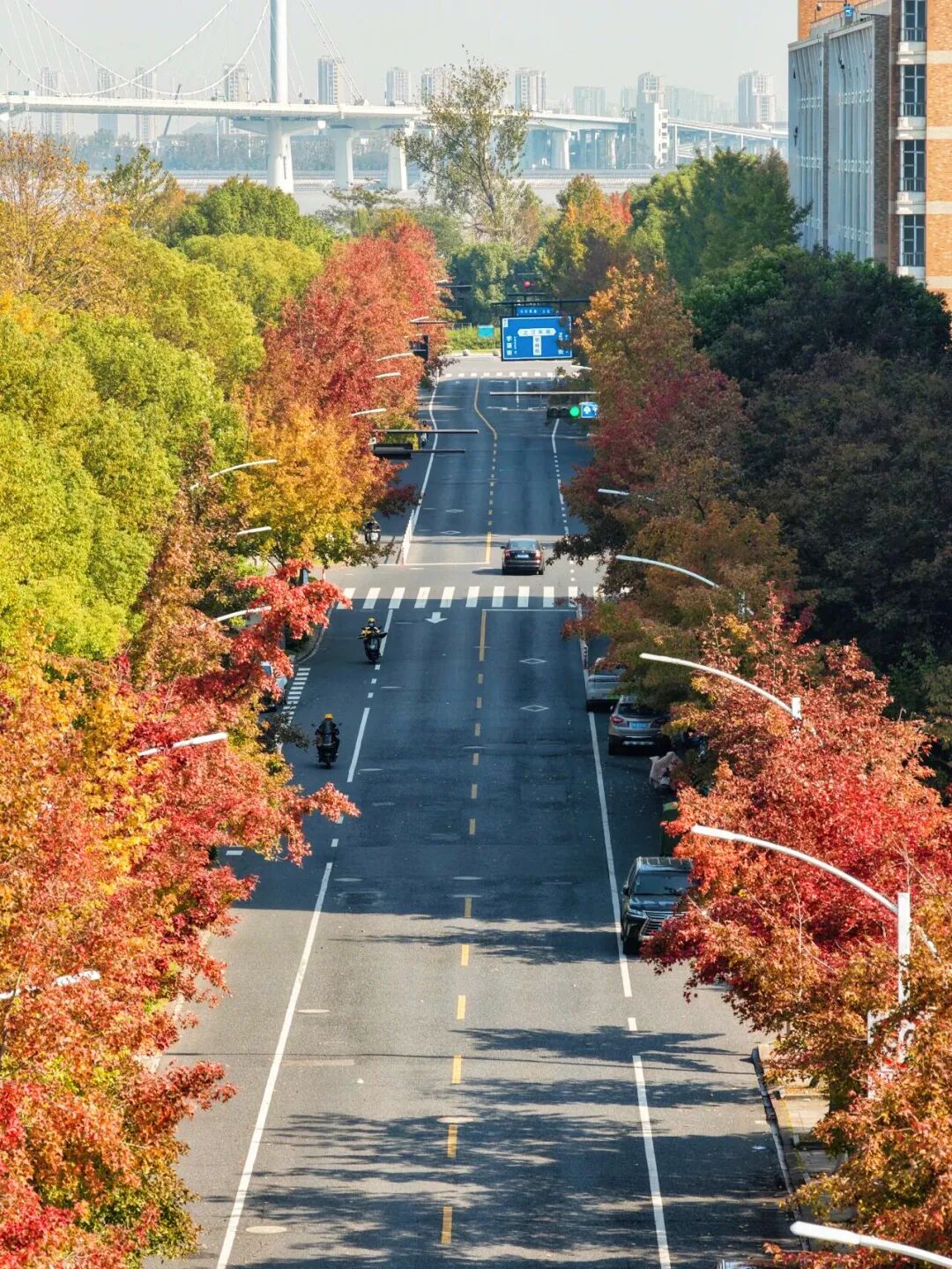 西环路也悄悄变了颜色。下课铃响后,三两好友相约一起去采风,用镜头定格这限定的美景。