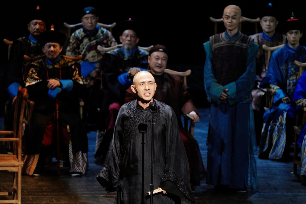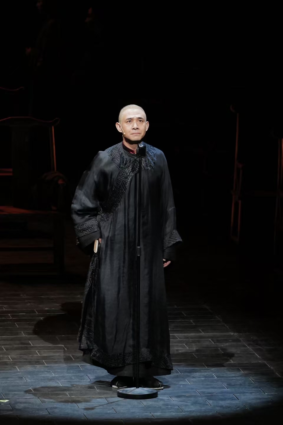贾一平:这场表演很有中国特色,主要是导演定的。刚开始我们也不知怎么演,那个场景很虚幻,不是写实风格。吴彼以前唱京剧黑头,我们很多动作是自己摸索设计的。我要说服他,他要推诿装糊涂,我们用了戏曲的一桌两椅。这种融合中国戏曲元素的呈现方式,观众很喜欢,很有中国戏剧的张力和节奏。如果更多人愿意探索,把中国这套东西做出来,肯定会受欢迎。