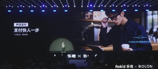 此次发布会上,Rokid推出与BOLON品牌合作的AI眼镜新品——BOLON AI智能眼镜,不含镜片重38.5g,还通过声纹支付技术开启购物场景。