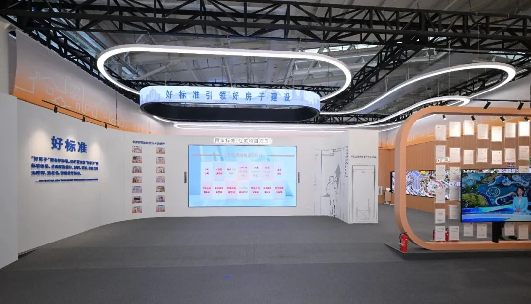好标准展区紧扣2025年《政府工作报告》中“适应人民群众高品质居住需要,完善标准规范,推动建设安全、舒适、绿色、智慧的‘好房子’”的工作要求,集中展示了我国近年来在好房子建设领域国家、行业、地方、团体及企业的标准化成果。该展区共分为五大部分。