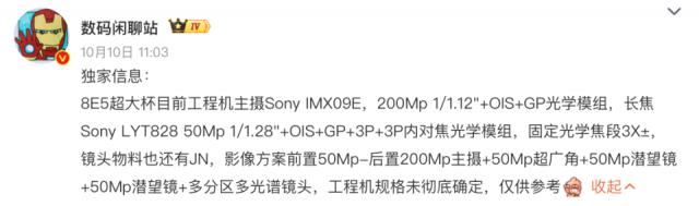 上一代 X200 Ultra 用两颗 LYT - 818 和一颗 HP9 两亿长焦,构建了全新的 14mm - 35mm - 85mm 「三主摄」系统。这次 X300 Ultra 据说打造了首台「双两亿」影像旗舰,主摄是 Find X9 Ultra 同款的索尼 IMX09E,焦距为 35mm,超广角和长焦预计换成最新的 LYT - 828 和 HPB。
