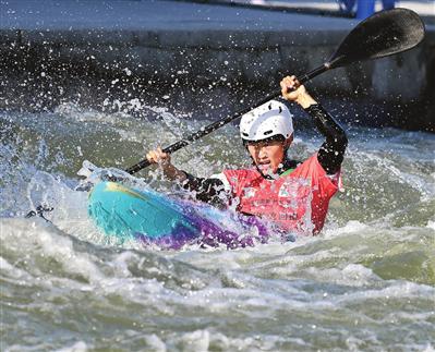这是天津选手陈琳在女子极限皮艇比赛中的画面。