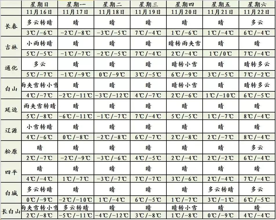 吉林省周天气预报: