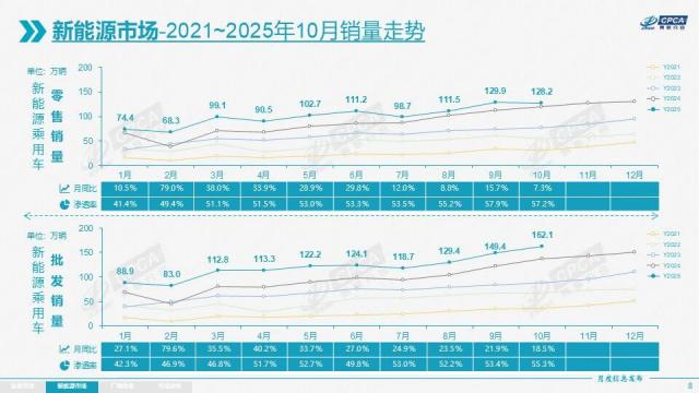 10月,新能源零售渗透率继9月后,再次突破57%。从销量看,电车市场一片繁荣。