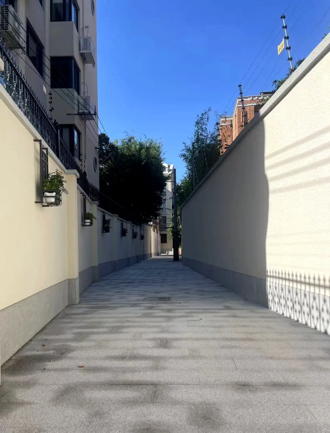 抬头望去,过去裸露在外的空调外机被统一的浅灰色机罩包裹,杂乱的晾衣绳换成了沿墙设置的金属晾衣架,几件刚洗好的衣物整齐悬挂,透着生活的烟火气。脚下的路面也“改头换面”,陈旧破损的老地砖换成了平整光洁的大理石铺装,就连角落的杂物堆放处,如今也清理得干干净净,留出了宽敞的通行空间。