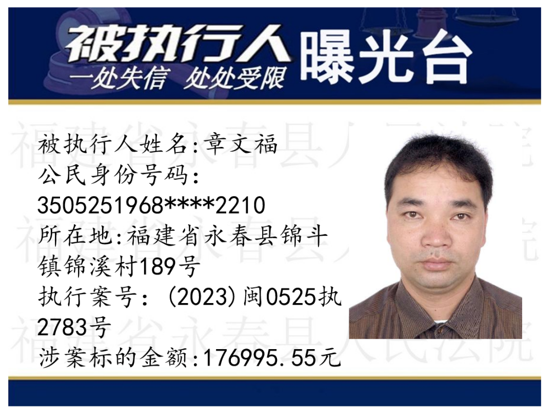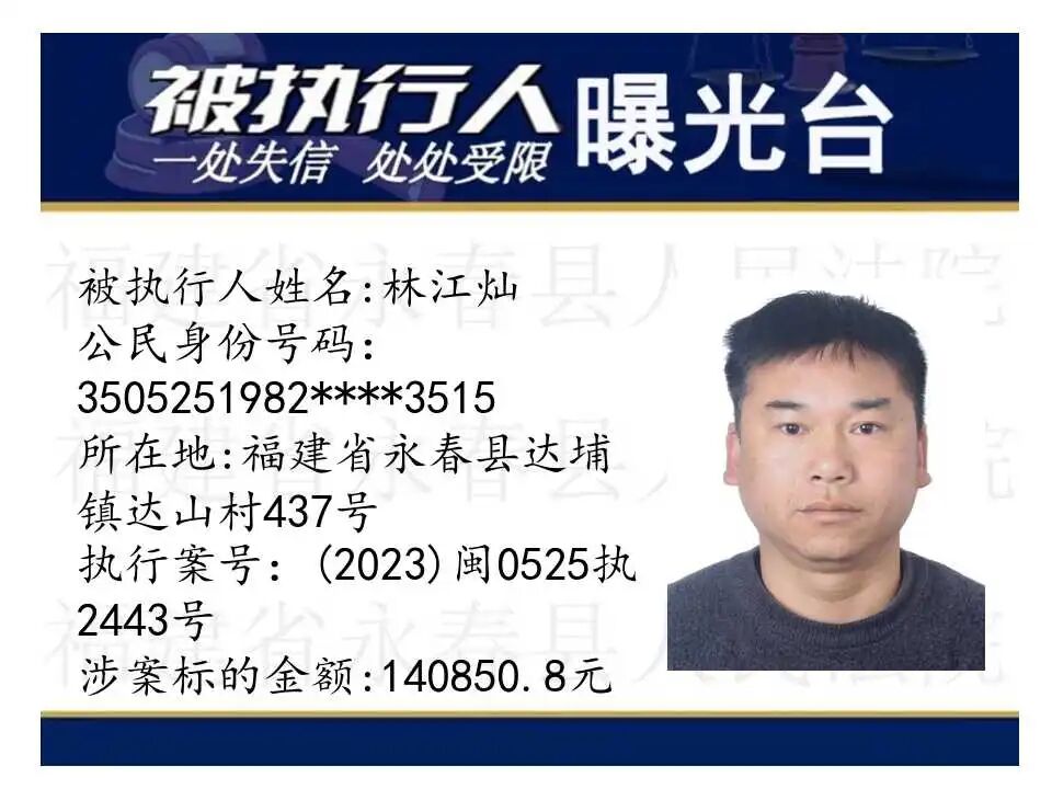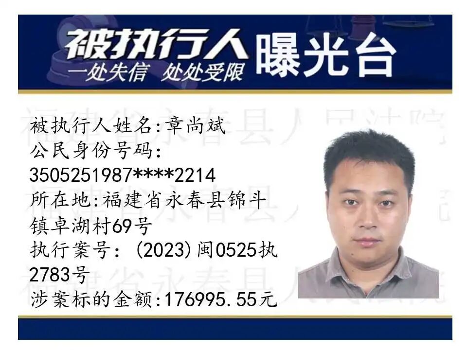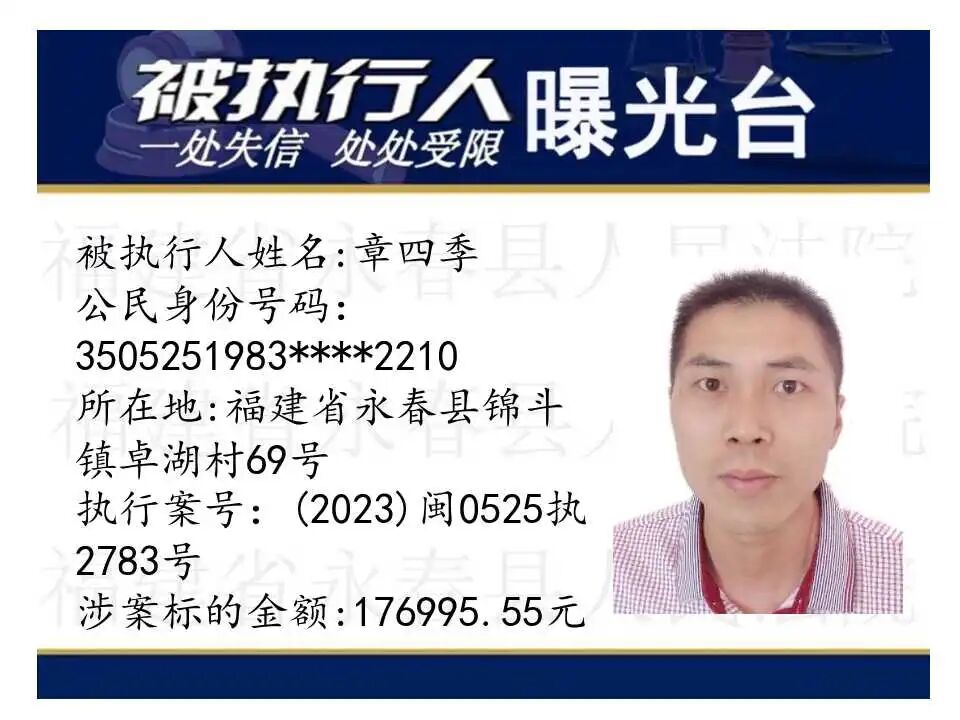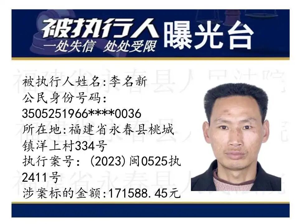 原标题:《失信曝光台丨人脸+实名,永春法院曝光失信被执行人》