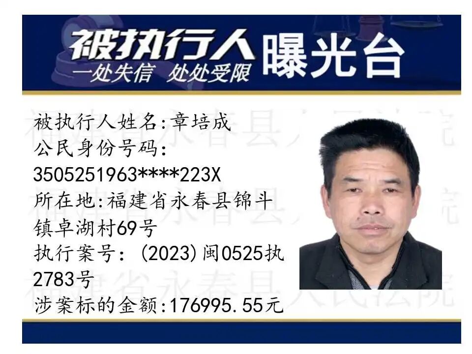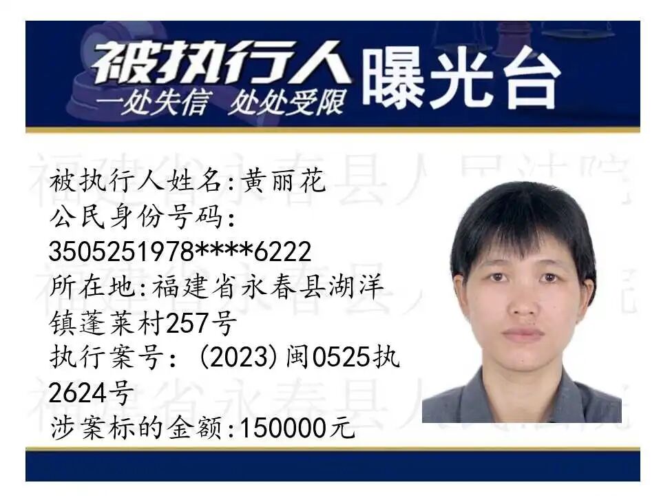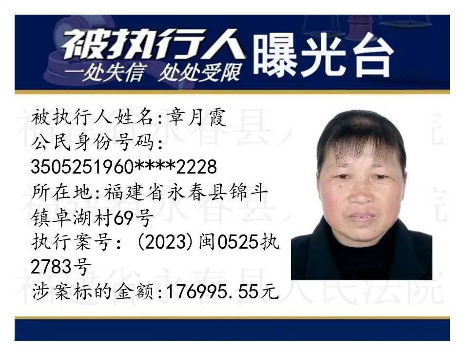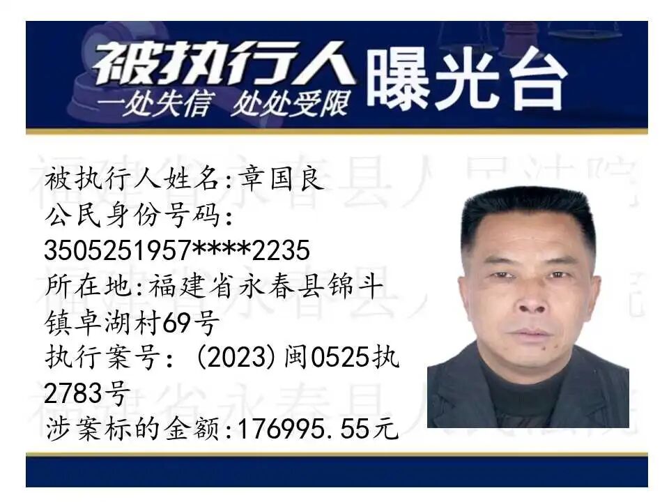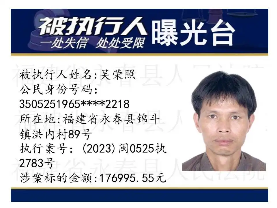 原标题:《失信曝光台丨人脸+实名,永春法院曝光失信被执行人》