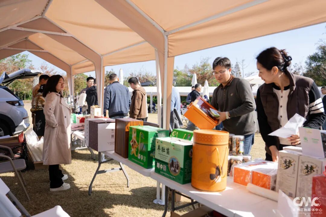 一旁的特产展销区为意犹未尽的游客提供了把“崇明”带回家的机会。鸿田村时令农产品礼包、基地直供的羊肚菌与藏红花、膏满黄肥的崇明清水蟹、万禾农业的优质白山羊肉等本土特色产品很受欢迎。来自雪雁、东滩花园、揽海等社区的新岛民摊位,展现了崇明多元、活力的社区文化,为市集增添了别样的色彩。