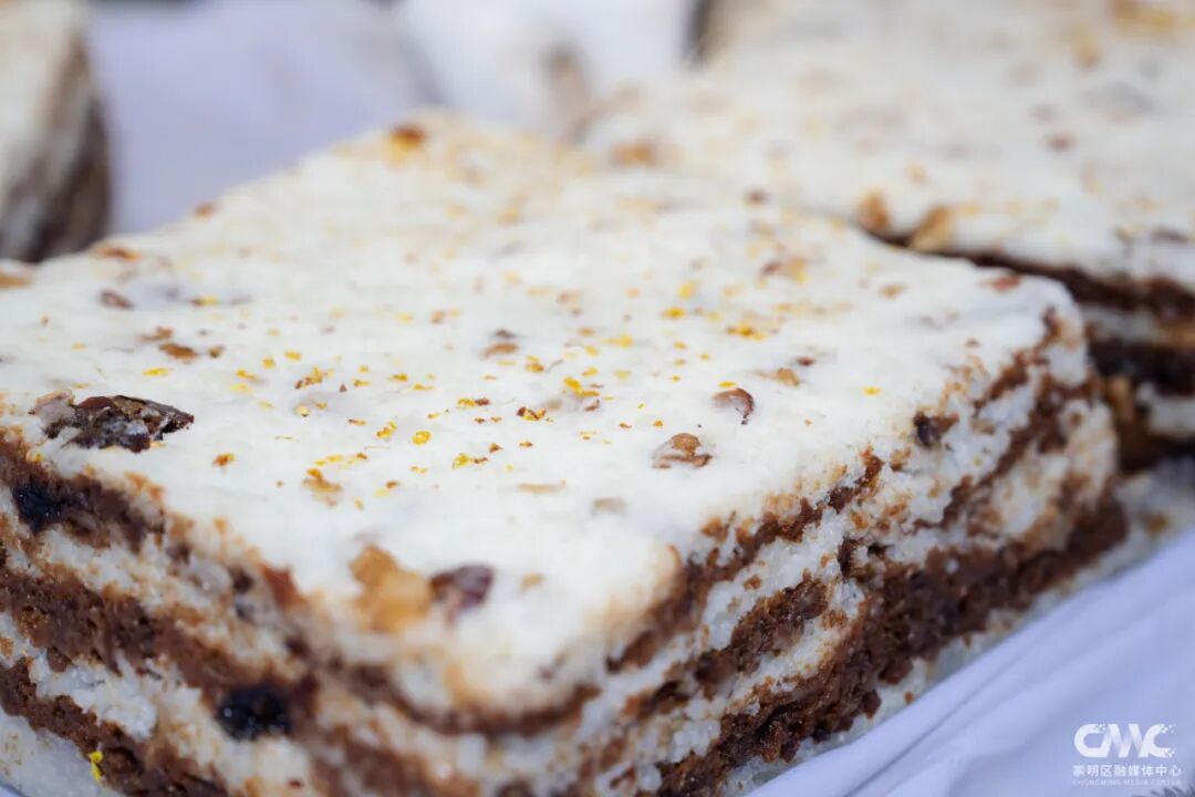美食区吸引了众多游客,各摊位前早早排起了长队。羊肚菌与鸡汤、蟹黄融合在一起,煮成了一碗鲜美的“羊肚菌鸡汤蟹黄面”;清润甘甜的小吊翠冠梨汤为这场味觉盛宴带来了一丝清爽。此外,特色烧烤香气扑鼻,烤全鸡、烤羊腿让人垂涎三尺;在充满热带风情的芭蕉树景观下打卡并试吃特色美食,或者观赏独特的鸭嘴鱼,都成了游客们发朋友圈的亮点。鸿田小院摊位上,崇明糕现场制作、现做现卖,蒸腾的热气中散发着米香,这是地道的老崇明味道。
