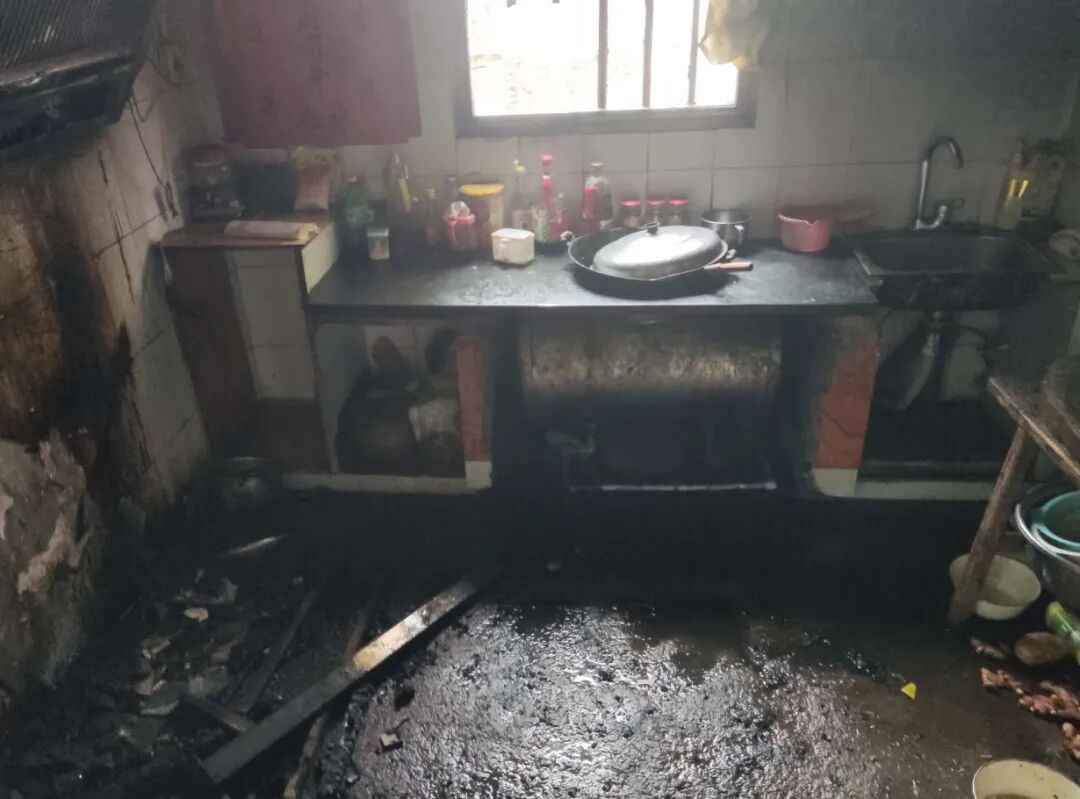 江苏苏州,一户居民家厨房发生火灾,导致微波炉、电饭煲、橱柜、冰箱等被烧毁,吊顶也被烧穿。经调查,