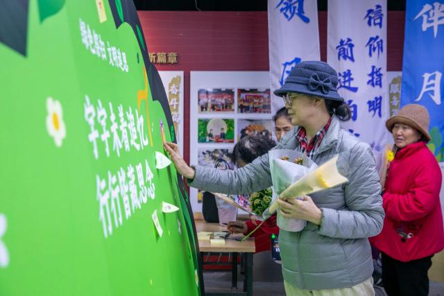 值得一提的是,当天的文明实践活动还设置了 ‘追思寄语墙’ 与 鲜花领取台。在创新环节 ‘AI复活老照片’ 中,活动志愿者借助AI技术为居民提供 ‘老照片动起来’ 体验服务。现场,不少居民手持纸笔,将对逝者的思念化作深情寄语张贴在展板上;还有居民领取鲜花后,准备进行文明祭扫寄托思念。