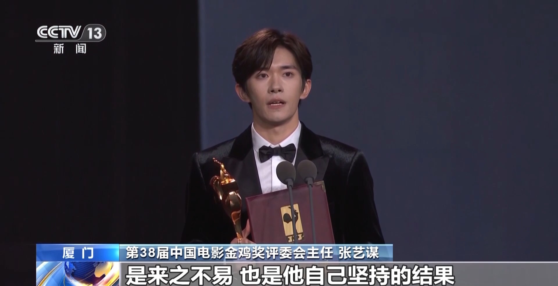 第38届中国电影金鸡奖评委会主任 张艺谋:我和易烊千玺(最佳男主角)已经合作过两次了,我认为他是一位非常难得的优秀年轻演员。其实,我很早就关注他了,他如今得到大家的认可实属不易,这是他坚持和努力的结果。能看到他在表演领域有着敬畏之心,始终孜孜不倦地努力。一个年轻演员没有偶像包袱,这很难得。谈及中国电影的表演,我们不应只关注老戏骨,也要把目光投向新一代年轻演员。