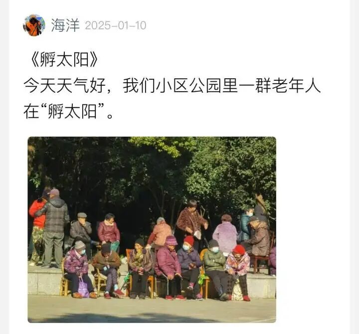 网友们的回复也是五花八门,河北网友说叫“晒老阳儿(爷儿)”;江西网友称是“晒暖”;山东网友跟帖“晒阳阳”;广东潮汕的说法是“借日”;此外还有“晒太影儿”“晒热头”“晒意阳儿”等等。
