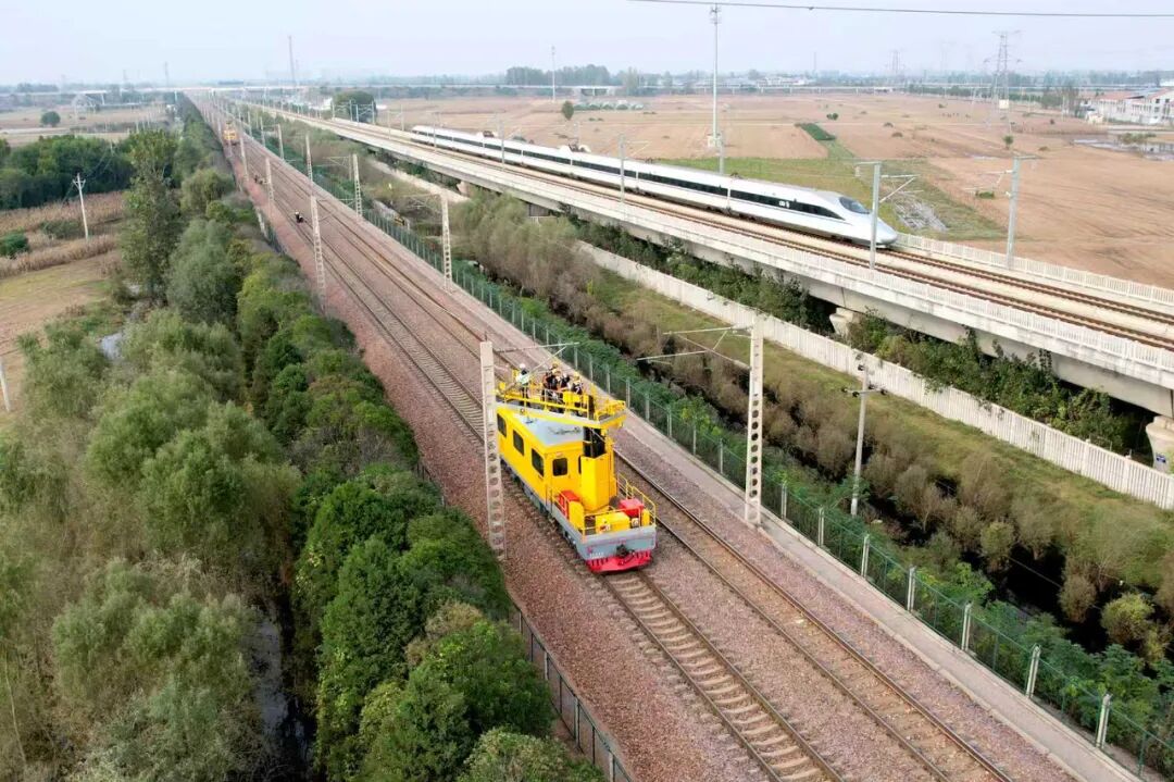 11时,被称为“大黄蜂”的电力检修作业车沿下行股道驶入作业区段。商丘供电车间副主任王二鹏作为施工负责人,与区间各作业小组进行施工前最后确认:“地线已接挂,安全措施到位,可以开始作业!”