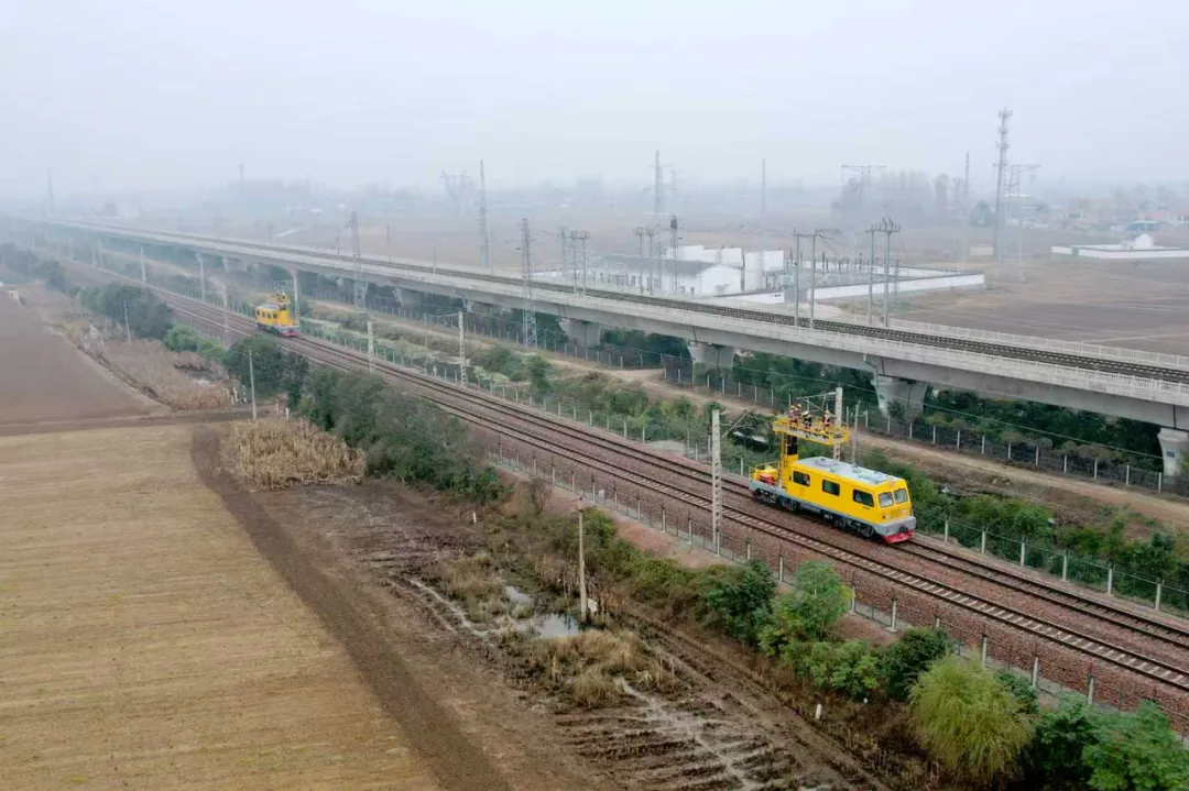11月6日,初冬的豫东平原细雨纷飞,京九线下行伊尹站至木兰站区间,接触网集中修作业正有序开展。