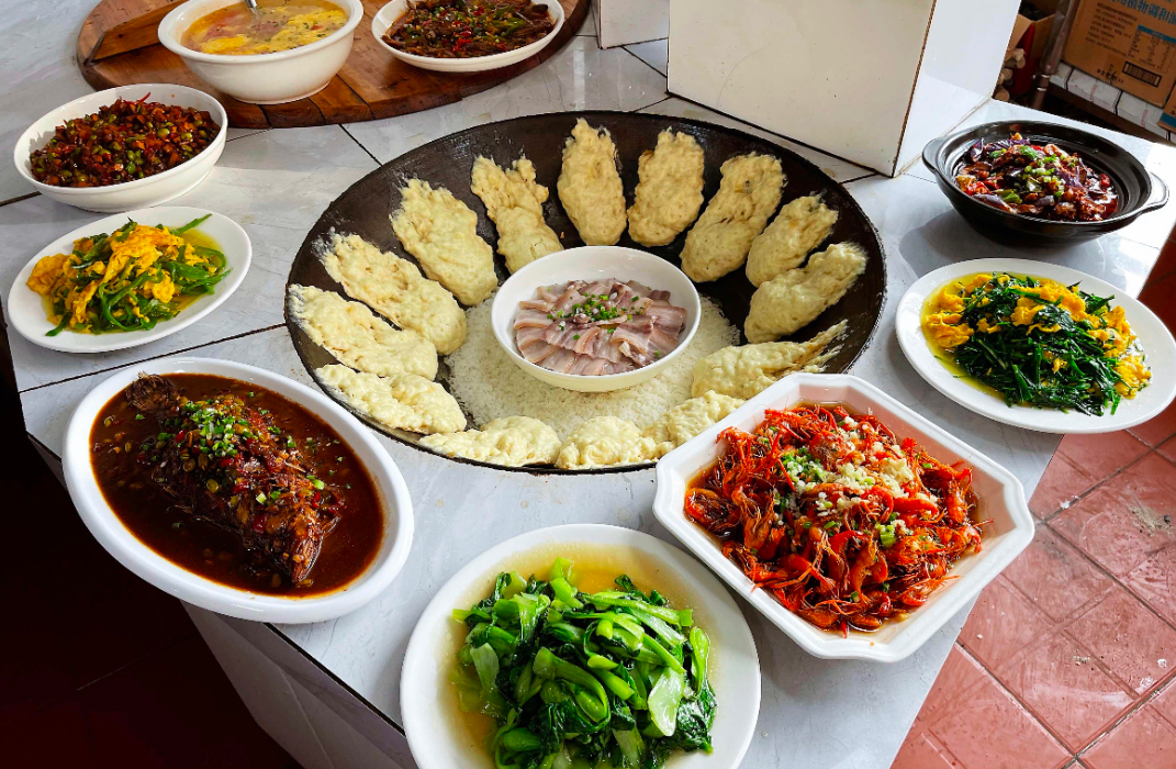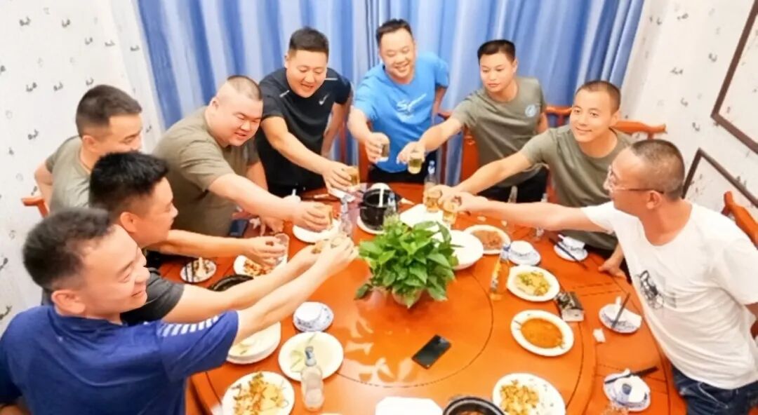 夜晚,吴志华和一群老兵围坐一起,吃农家菜、唱军歌,那一刻,“仿佛回到了军营”。