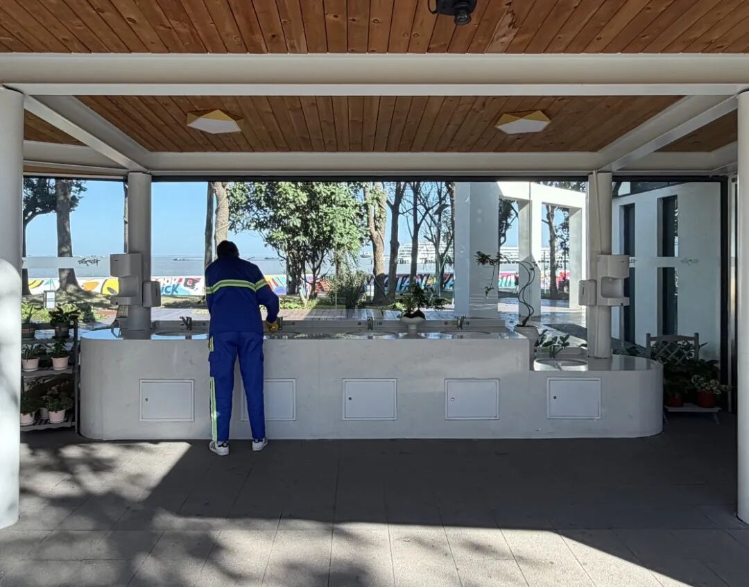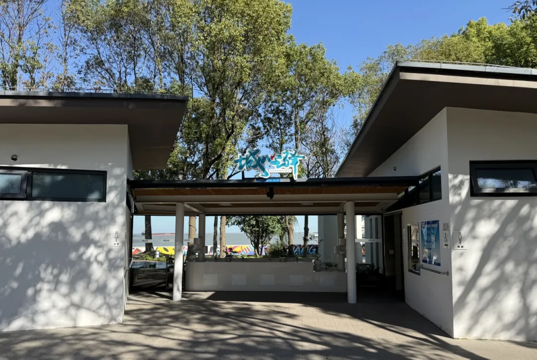 “城心驿”公厕位于宝山滨江景观带,毗邻上海吴淞口国际邮轮港和上海·海上世界,是展示城市形象的重要窗口。2024年经过全方位改造升级后,这座公厕已突破传统功能边界,成为集如厕、休憩、观景于一体的复合型城市驿站。
