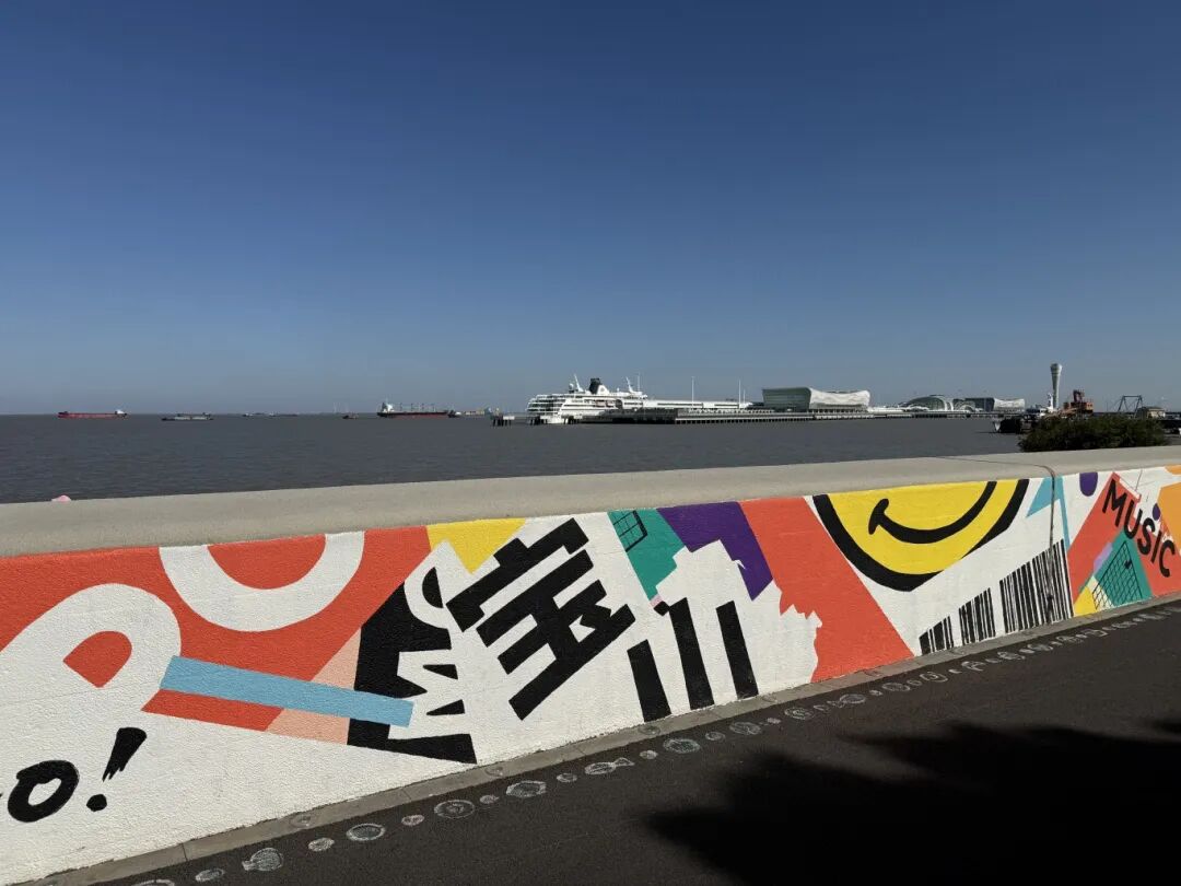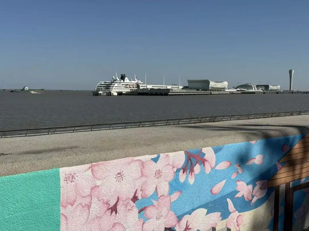 宝山邮轮岸线,漫步滨江步道,偶遇邮轮进港,超适合拍照。