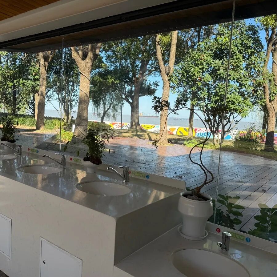 你见过洗手时能欣赏江景的厕所吗?在宝山滨江就有这样一座颜值与科技并存的“特色厕所”。