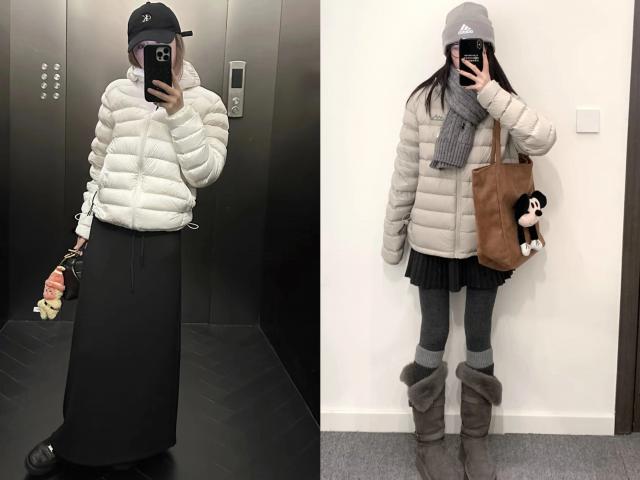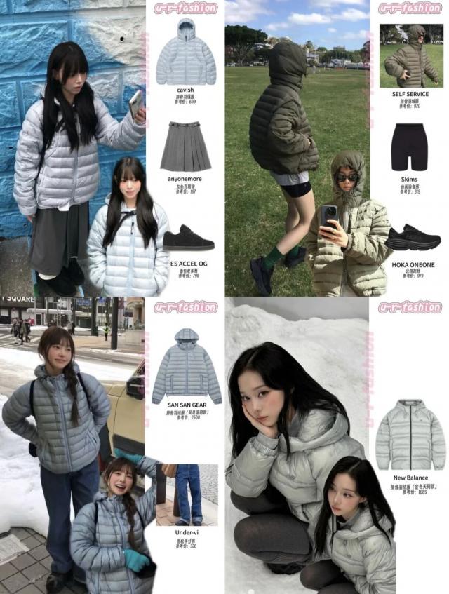 在小红书和Ins上,“排骨羽绒服”穿搭话题浏览量飙升。它不再是“妈妈觉得你冷”的无奈选择,而是精心搭配的“松弛感ootd”。韩星郑秀晶用它搭配毛线帽,尽显松弛自在;国内博主用它混搭裙装,刚柔并济。