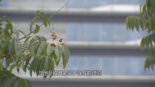 陈某交代,一开始他玩弹弓打易拉罐只是为了解压。自恃技艺成熟后,就开始练习击打河边树上的果子。