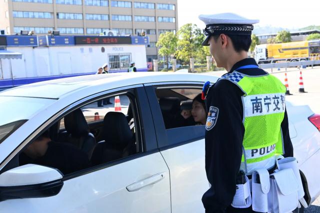 南宁交警“空地结合”整治不系安全带行为
