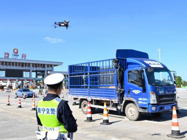 11月12日,南宁市公安局交管支队高速一大队于沙井收费站开展道路交通安全排查整治行动。此次行动采用无人机空中巡查与地面整治“空地结合”的方式,重点整治驾乘人员不系安全带的违法行为。
