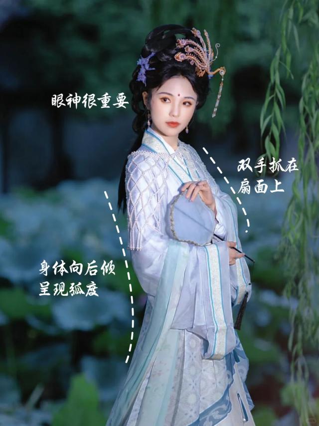 - 延伸动作:用扇子轻点下巴或搭在肩头,增加灵动感。
