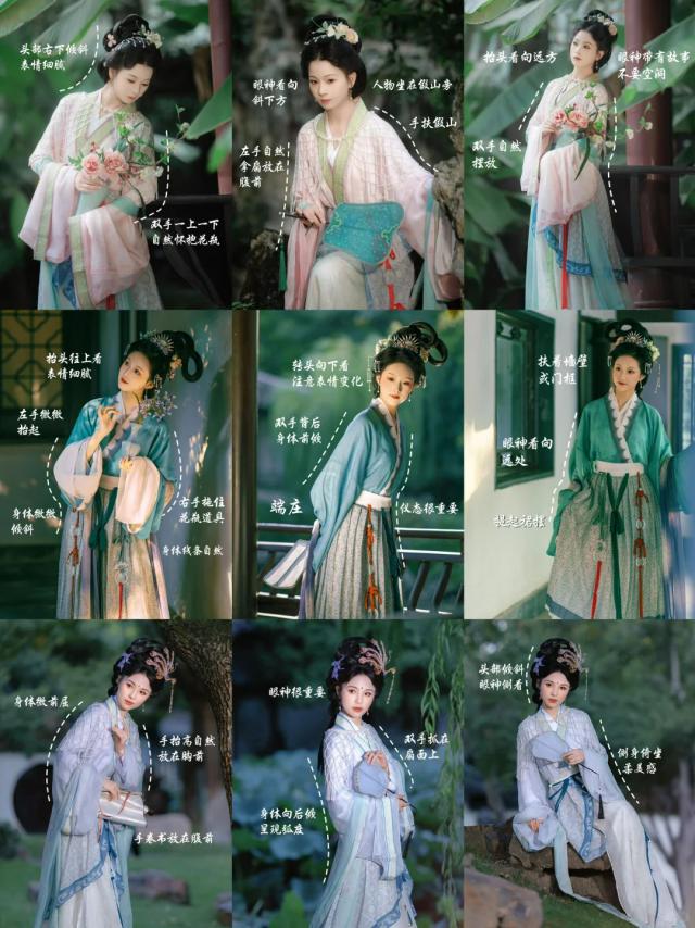 快来学!小唐风、复原汉服及汉服竹林的万能拍照姿势,还有汉服拍照四要点,超出片!