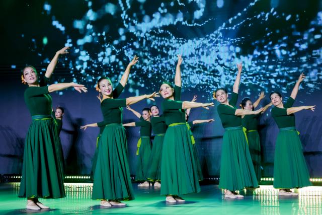 社区群众舞蹈专场汇聚了来自唐镇的10支基层舞蹈团队,他们的舞蹈风格丰富多样,涵盖了民族舞、交谊舞、现代舞等。这生动地展现了社区文艺创作的丰富性。其中,中老年舞蹈队的爷叔阿姨们精神抖擞,舞步熟练,充分展现出银发群体对艺术的热情以及他们独特的时代风采。